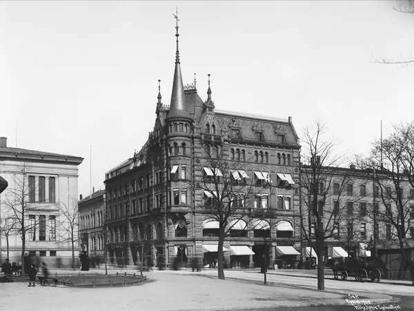 hotell Westend, forretningsgårder, markiser, mennesker, hestekjøretøy, gateliv
