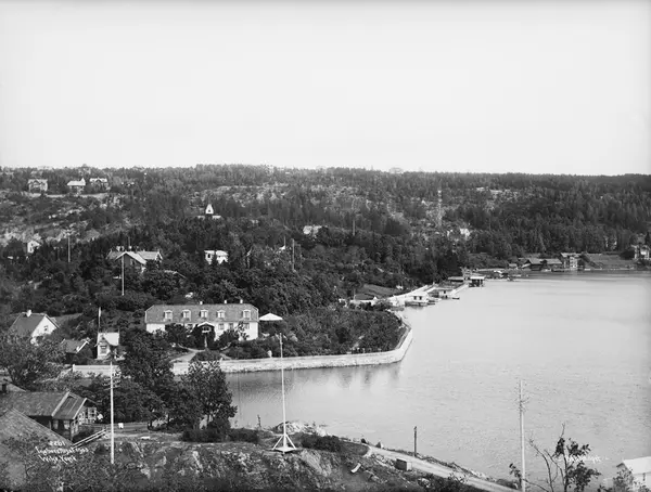 utsikt, sund, villabebyggelse, hager, badehus, stakitt