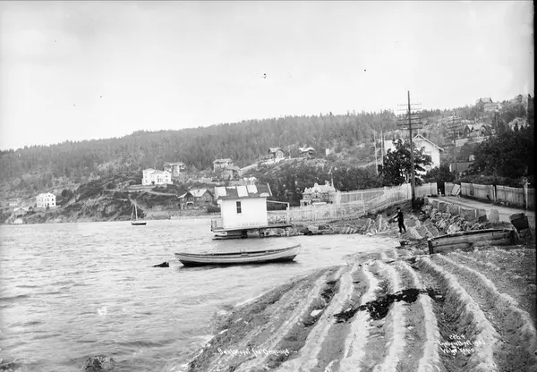 Bildet viser familien Sybergs badehus. Det ble pusset opp og vedlikeholdt frem til badehuset med tilhørende 84 meter strandlinje ble ekspropriert av Oslo Havnevesen på begynnelsen av 1980-tallet og deretter omgjort til containerhavn.