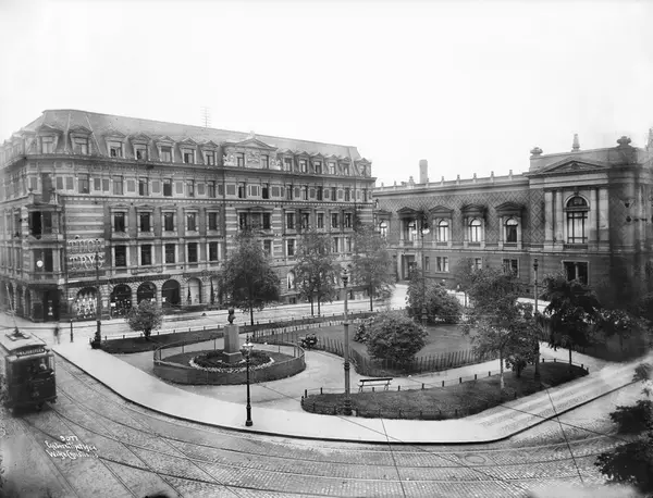 forretningsgård, Frimurerlogen, park, portrettbyste, trikk