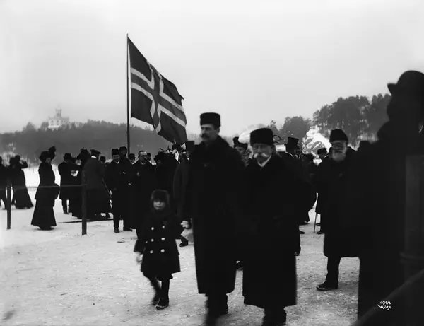 fjord, is, idrettsarrangement, snørekjøring, kongetribune, konge, kronprins, flagg, Oscarshall