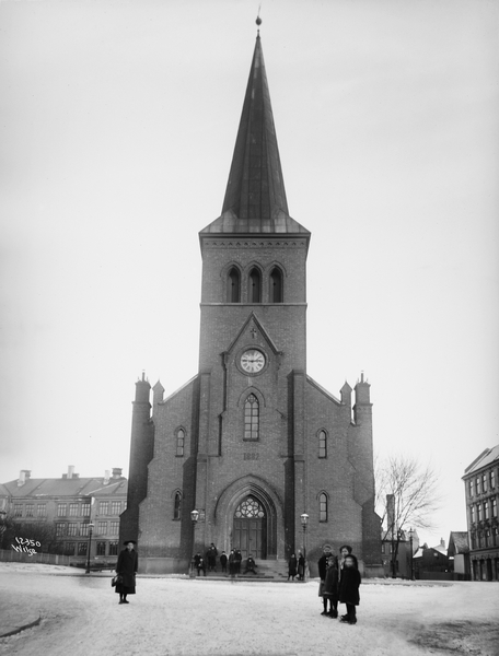 Kampen skole til venstre bak kirken. I høyre bildekant Normannsgata 43.
