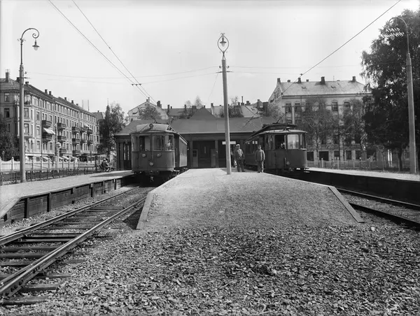Majorstuen stasjon, trikker, konduktører, bygårder