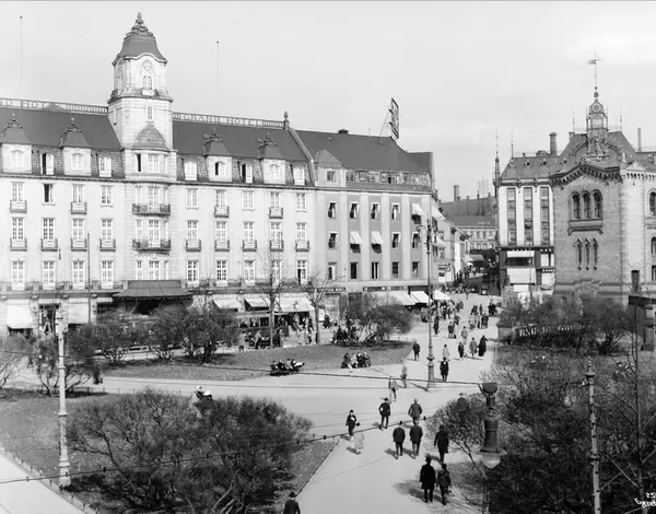 plass, park, trikk, biler, mennesker, gateliv, Grand Hotel, Stortingsbygningen