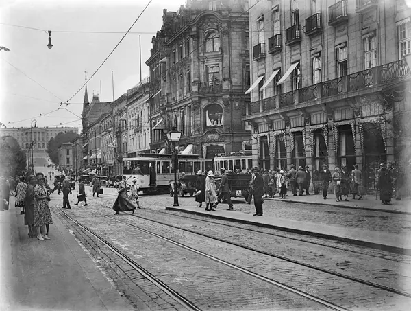 gateløp, gateliv, mennesker, trikk, biler, Grand Hotel, Hotell Nobel, Slottet