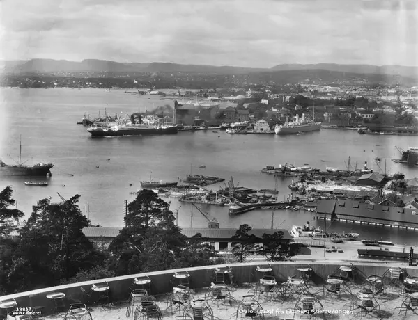 Ekebergrestauranten, terrasse, friluftsrestaurant, utsikt, havn, dampskip, Amerikabåter, by