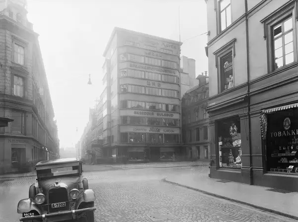 forretningsgårder, fasadereklame, tobakksforretning, utstillingsvindu, bil, gatebelysning