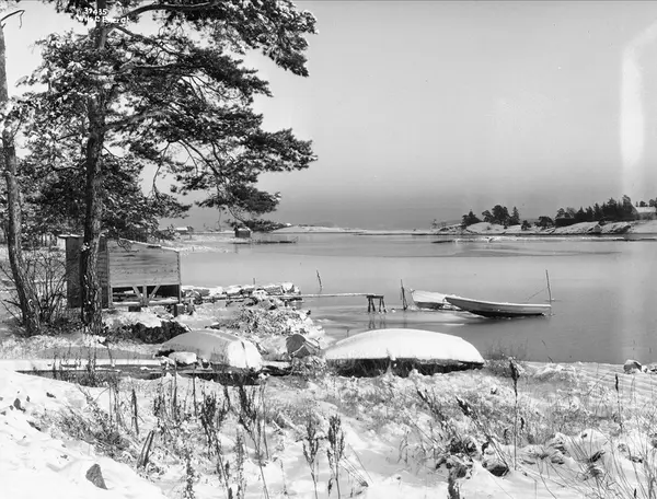 Snarøykilen sett fra Ankerbrygga. Halden til venstre. Geitholmen i bakgrunnen, nordenden av Strømstangen til høyre. Skjæret "Amerika" til høyre ute i kilen.