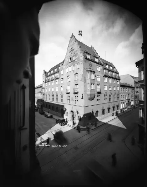 Hotel Bristol, biler, forretningsgårder, mennesker, gateliv