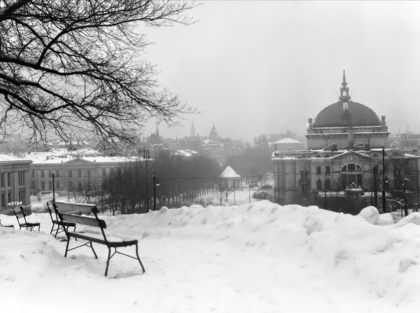 park, benker, snø, utsikt, Universitetet, musikkpaviljong, Nationaltheatret