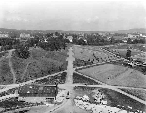 utsikt, park, anleggsarbeid, villabebyggelse, Diakonhjemmets sykehus, Universitetet på Blindern, Kringkastingshuset