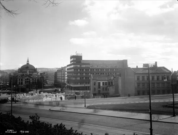 utsikt, vei, bygningsarbeid, byggetomt, grunnarbeider, bygårder, Nationaltheatret, Saga kino