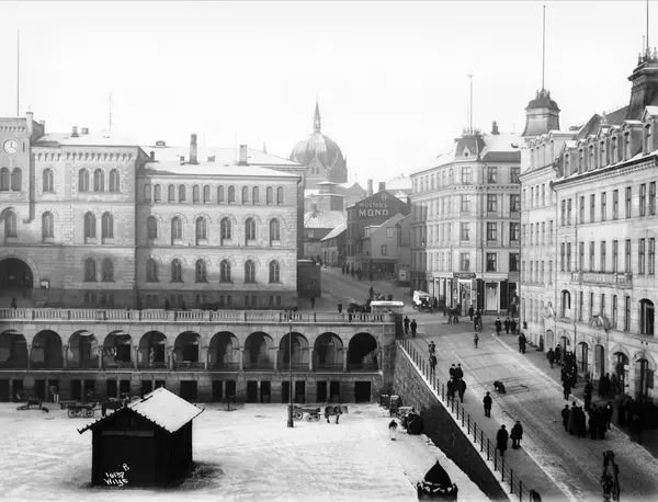 utsikt, basarer, politistasjon, Folkets Hus, Trefoldighetskirken, forretningsgårder, mennesker