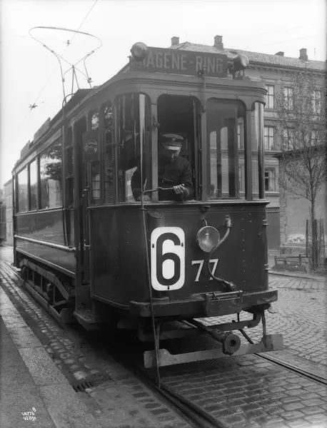 Fotografert i forbindelse med at vognene fikk montert utvendig sladrespeil for vognføreren og "langt pensjern" som gjorde at man slapp å gå ut for å legge over pensene hvis man klarte å plassere vognen riktig. Dette ble montert på vognene ca 1916-18. Det er ikke samsvar mellom linjenummer og destinasjonsskilt, så bildet er arrangert.