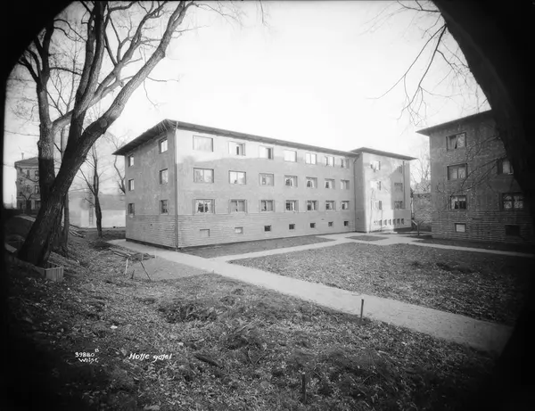 Gården i midten hadde tidligere adresse Holtegata 1, og er nå Lallakroken 8. Gården i høyre bildekant er President Harbitz gate 15, tidligere nr. 5. Tomten disse to gårdene ble bygget på hadde tidligere adresse Briskebyveien 34. Gavlveggen til venstre tilhører Briskebyveien 40, til venstre for denne igjen Briskebyveien 38.
