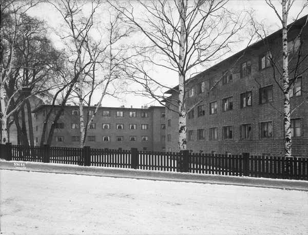 Til høyre President Harbitz gate 15 (tidligere nr. 5). Til venstre Lallakroken 8 (tidligere Holtegata 1). Tomten disse to gårdene ble bygget på hadde tidligere adresse Briskebyveien 34.