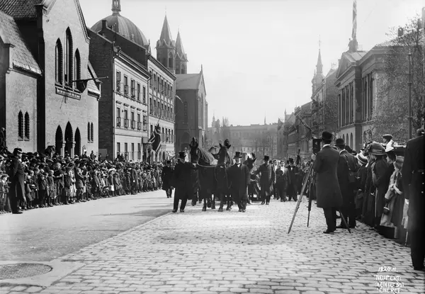 Bjørnstjerne Bjørnsons gravferd, prosesjon, publikum, filmfotograf, bygårder, Akersgatens misjonshus, Hammersborg skole