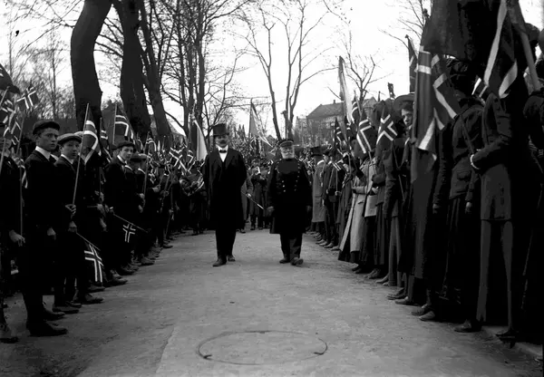 Dr. Carl Mathiesen, Bjørsnons livlege og nære venn, leder prosesjonen.