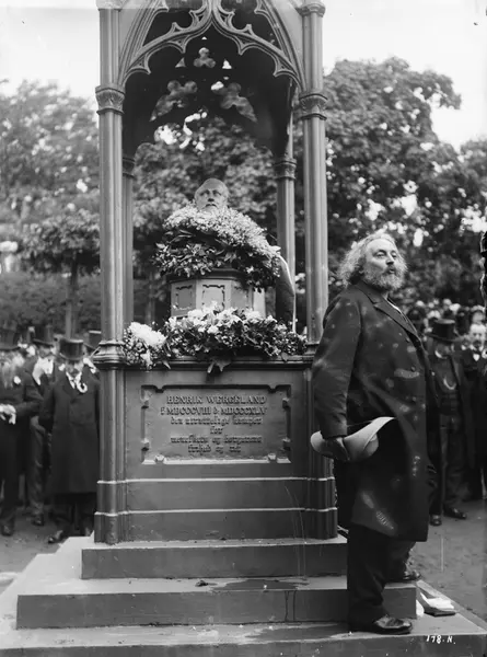 Vår Frelsers gravlund, Henrik Wergelands grav, blomster, kranser, mann, taler, 17. mai, publikum
