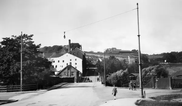 gateløp, mennesker, bro, bakke, trehus, fabrikkbygninger, bygårder, Egebergslottet