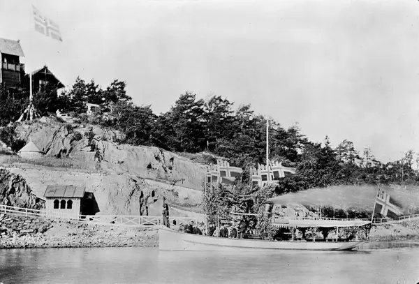 Oppe til venstre i bildet er grosserer Holters villa på Sjursøya.