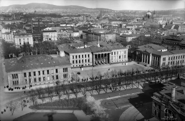 utsikt, Universitetet, Nationaltheatret, Nasjonalgalleriet, bebyggelse, mennesker