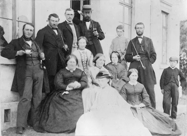 Til venstre løkkens eier Wilhelm Carlsen. Sittende til venstre Agnes Keyser. Sittende bakerst Rosalinde Ludovica Keyser gift med Martinius Chr. Brinch.
