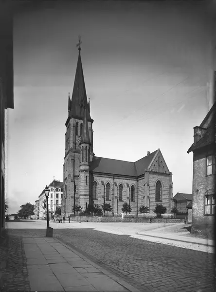 gateløp, Johanneskirken, bygårder, mennesker, hest, vogn