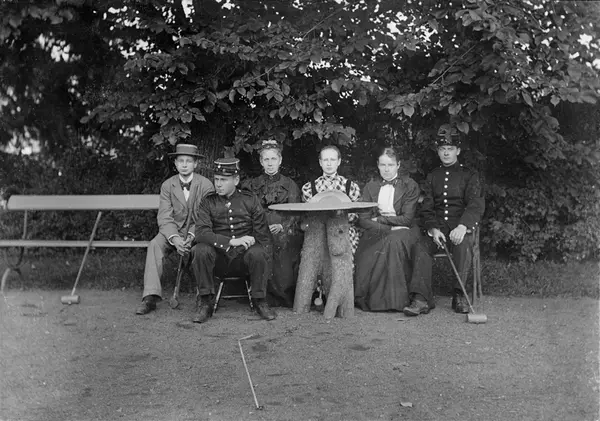 Villa Smedbråten, hage, kvinner, menn, uniform