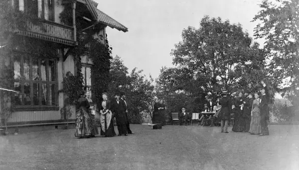 Villa Smedbråten, inngangsparti, trapp, kvinne, gutter, jente