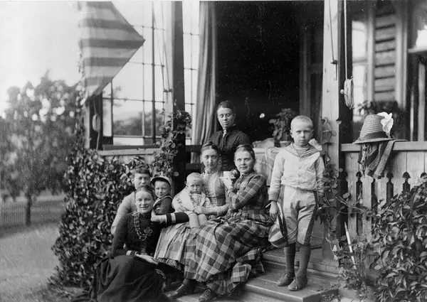 Karenslyst løkke, inngangsparti, veranda, trapp, kvinner, barn