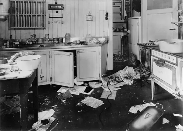 Ingeniør Niels Holwechs hjem i Munthes gate 30, 3. etasje, slik det så ut da han kom hjem fra tysk fangenskap i 1945. Nazistene hadde tømt og plyndret leiligheten.