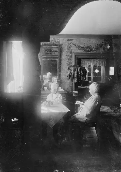 Ljabruveien er gammel adresse, Kronveien ny adresse. Frkn. Davidsen i stuen.