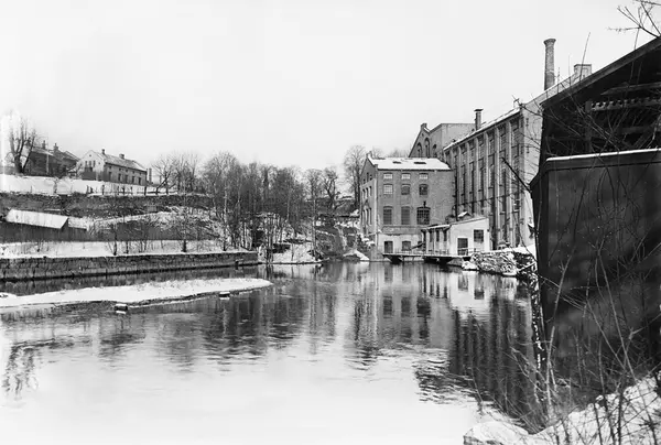 Christiania Seildugsfabrik, industribygninger, elv, snø, villaer