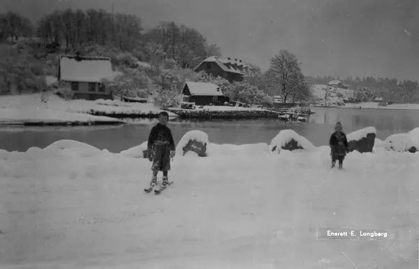 fjord, sund, villaer, barn, ski, snø