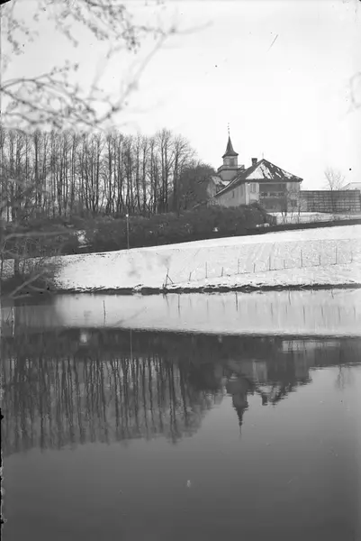 Frogner Hovedgård, herregård, park, allé, dam, speiling, snø