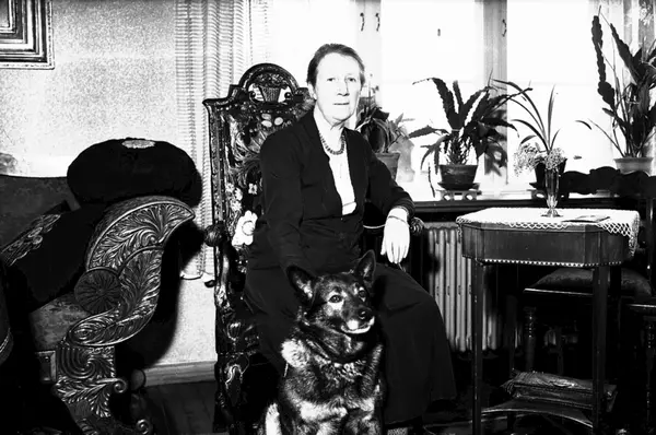 bolig, interiør, stue, kvinne, lege, politiker, kvinnesaksforkjemper, hund
