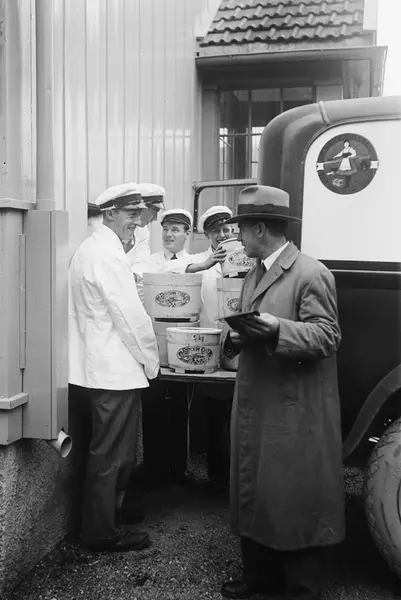 Synnøve Finden ostefabrikk, gårdsplass, bygninger, bil, personale