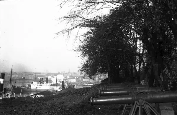 Akershus festning, vollene, Stallgårdens batteri, kanoner, utsikt, havn, skip