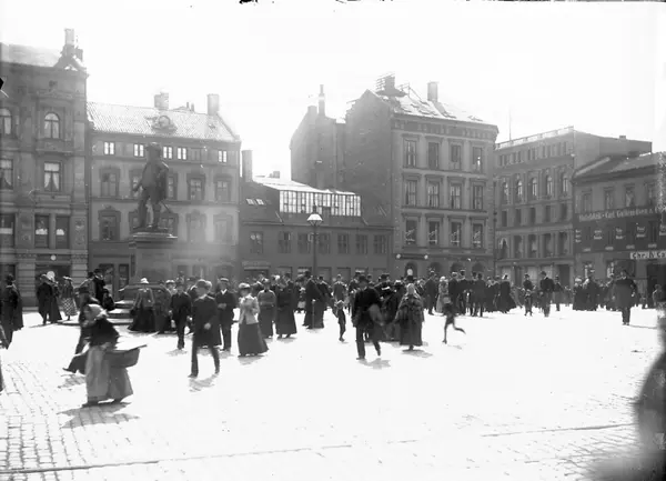torg, forretningsgårder, fotoatelier, mennesker, portrettstatue