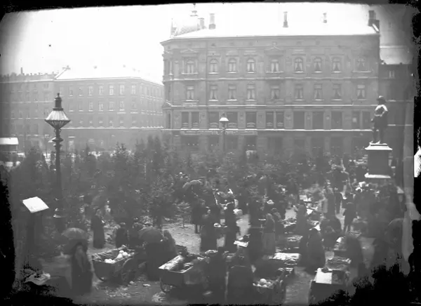 torg, juletresalg, mennesker, portrettstatue, forretningsgård