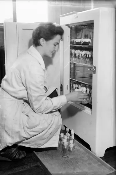 Statens forsøksvirksomhet i husstell, interiør, laboratorium, arbeidsprosess, kvinne