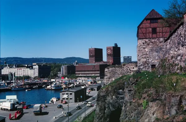 Akershus festning, utsikt, havn, båter, gate, biler, Rådhuset, kontorbygninger, Vestbanestasjonen