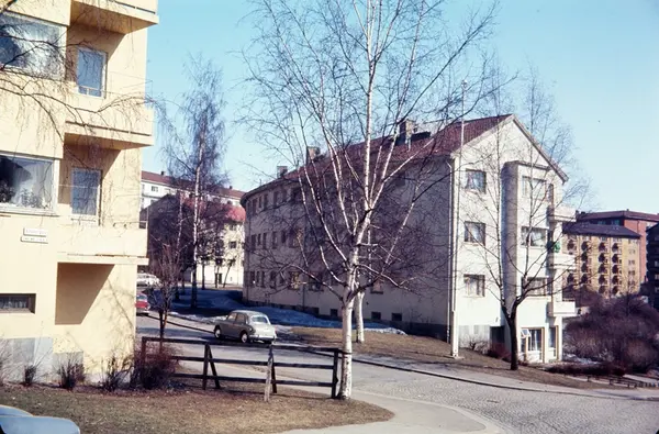 boligblokker, hager, biler