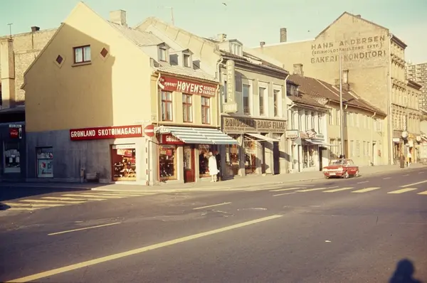 gateløp, forretningsgårder, Grønland skotøimagasin, Bøndernes Bank, gavlvegg, reklame for Hans Ander