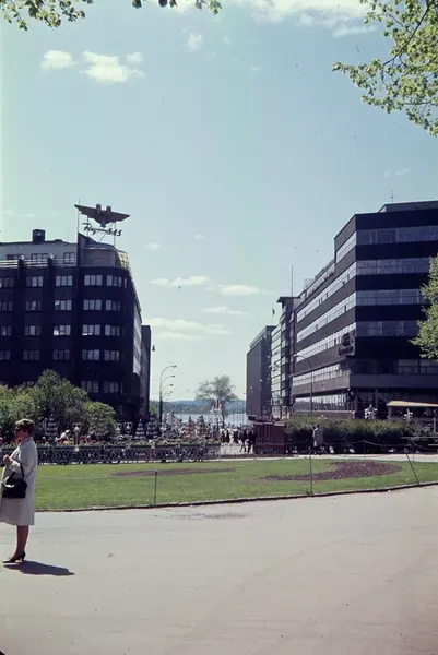 plass, park, Pernille friluftsrestaurant, mennesker, Hotel Continental, Odd Fellow-gården, gateløp, kontorbygninger, fjord