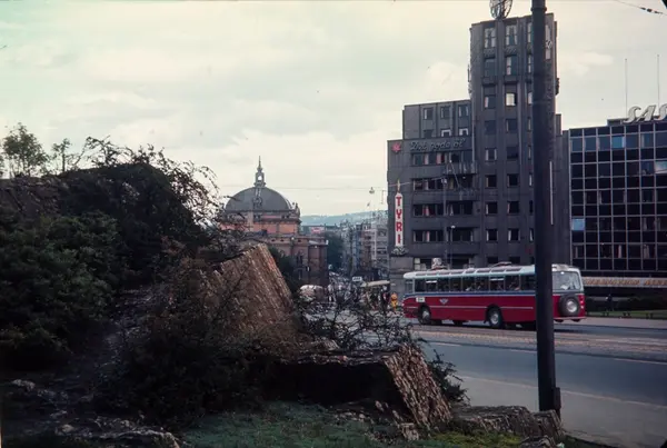 park, bergvegg, utstikt, gate, buss, Nationaltheatret, kontorbygninger