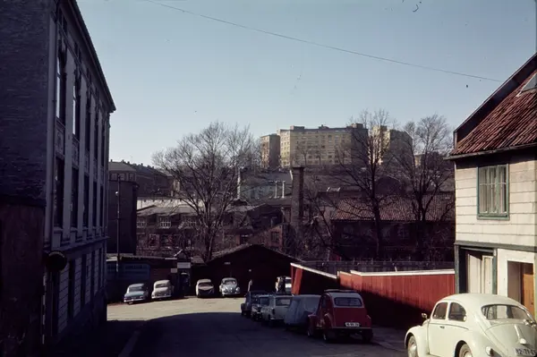gateløp, biler, bygårder, trehusbebyggelse, fabrikkbygninger, verkstedbygning, boligblokker