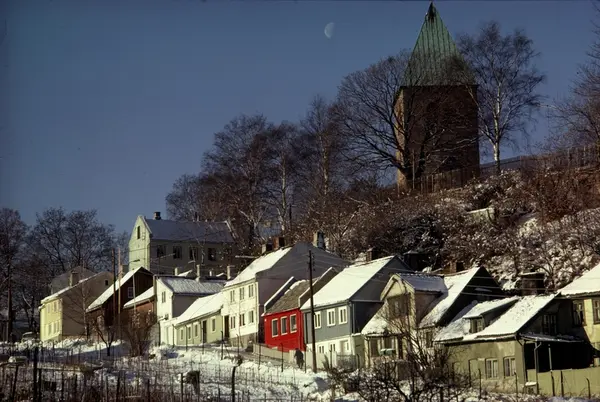 gateløp, trehusbebyggelse, Gamle Aker kirke, måne