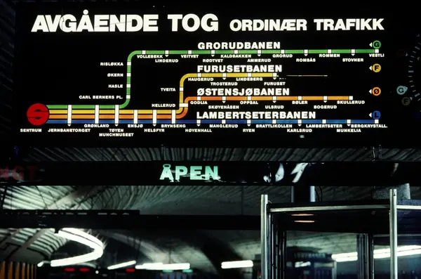Sentrum T-banestasjon, interiør, rutetavle, østlige T-baner